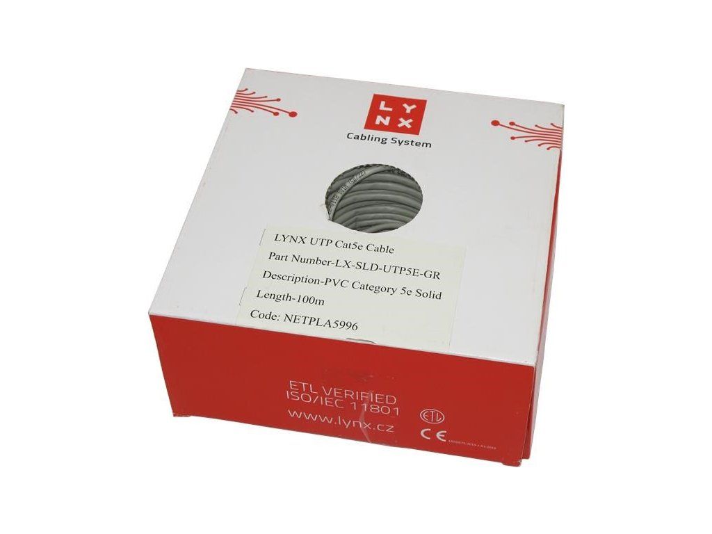 Inštalačný kábel LYNX Cat5E UTP je vhodný pre trvalé inštalácie vo vnútornom prostredí budov, stavieb a iných zariadení. Kábel je vhodný pre prenosové rýchlosti až 2,5 Gb/s. Kábel je vyrobený z medeného drôtu s priemerom 24AWG s PVC plášťom a triedou reakcie na oheň Dca.