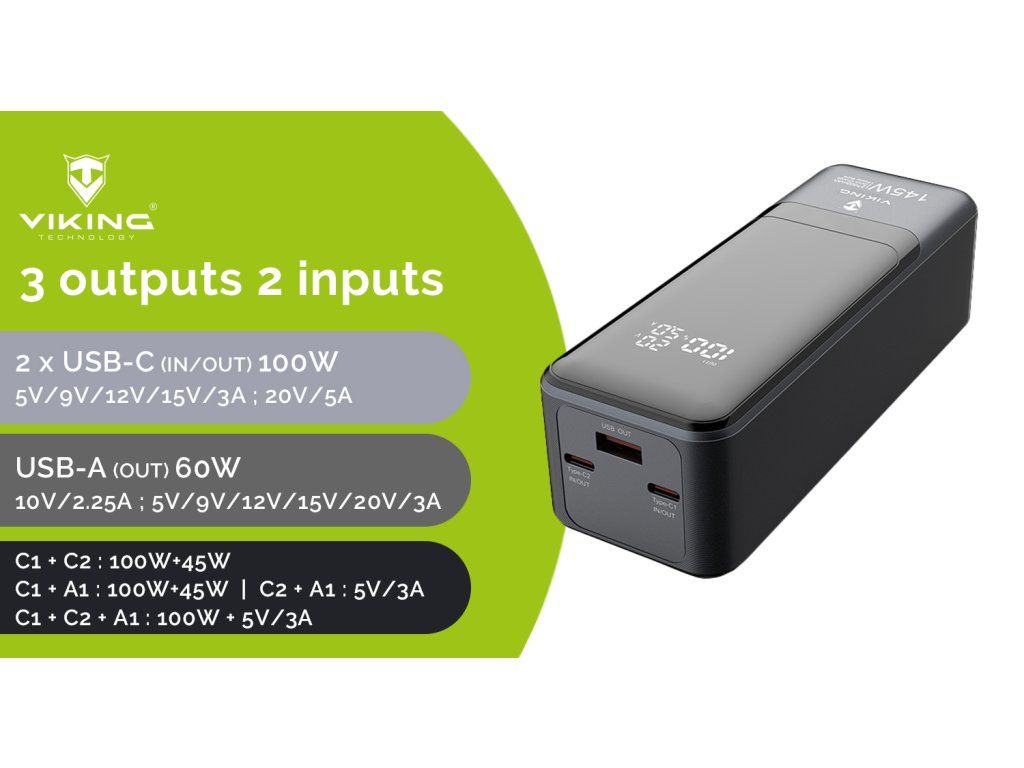 Viking PN-964PD 27000 mAh/Output:1xUSB-A,2xUSB-C/Input:2xUSB-C/ LED display PN964PD