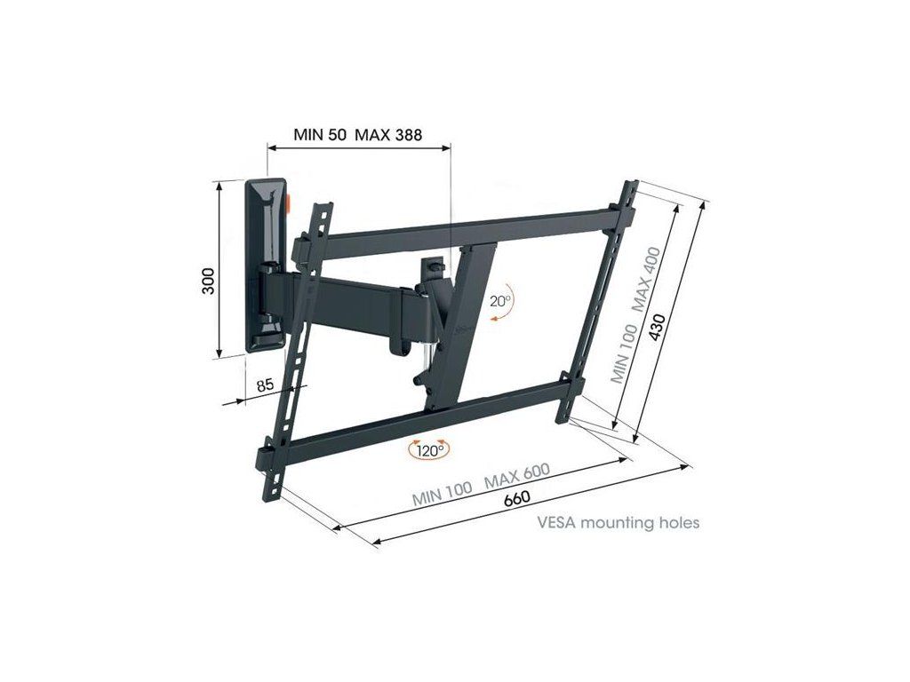 TV 40-77", natáčanie 120°, náklon 20°, hĺbka 50-388 mm, VESA do 600x400, 35 kgDodatočné parametre