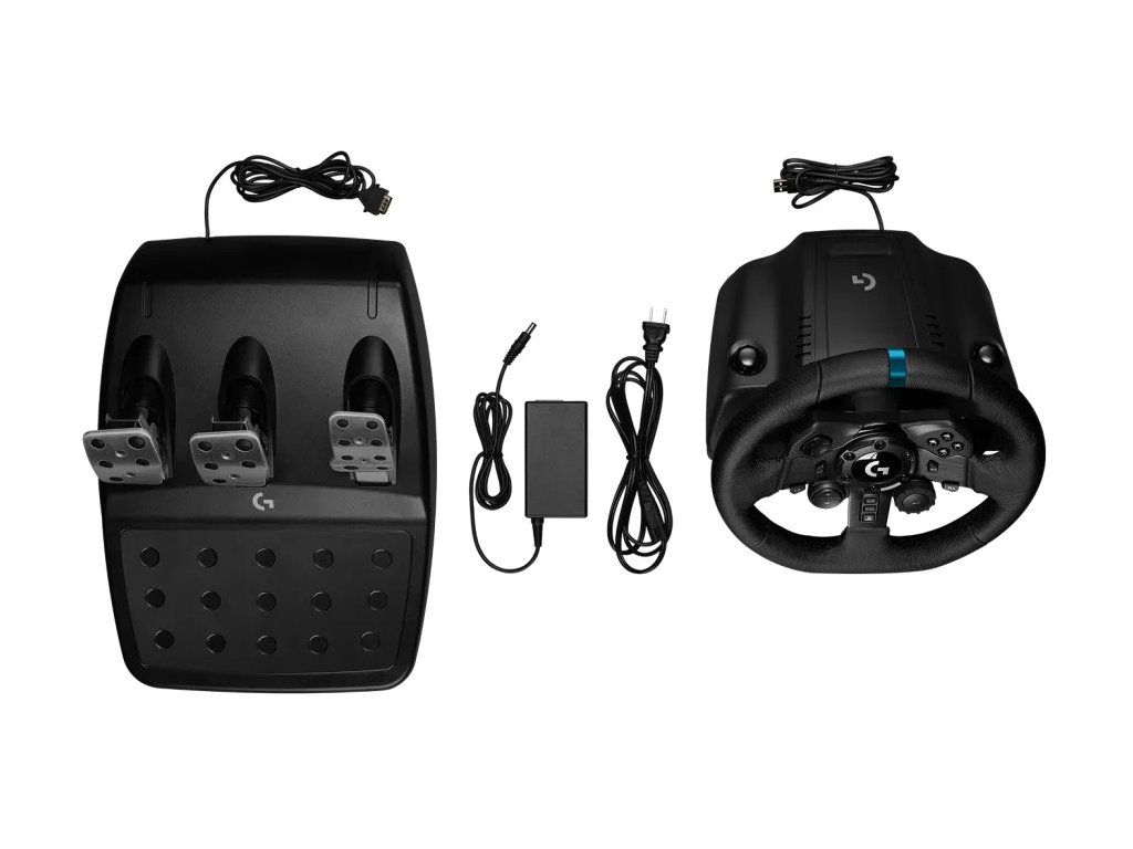 Logitech G923 TRUEFORCE Sim Racing Wheel * ovládací prvky pro PS5 nebo PS4 jsou integrovány přímo do volantu * volant z ručně šité kůže * integrované barevné indikátory LED označují rozsah otáček v podporovaných hrách * brzdový systém * pedály z válcované oceli Volant * Rotace: 900° od dorazu k dorazu * snímač otáčení fungující na principu Hallova efektu * dvoumotorová zpětná vazba s TRUEFORCE * ochrana proti přehřátí Rozměry: 270x260x278mm Hmotnost bez kabelů: 2,25kg Pedály * nelineární brzdový pedál * patentovaný úchytný systém na koberec * zdrsnělá opěrka pro paty * automatická kalibrace Rozměry: 167x428,5x311mm Hmotnost bez kabelů: 3,1kg Systémové požadavky: * hra podporující závodní volant se zpětnou vazbou Logitech * systém PlayStation 5/PlayStation 4 nebo * Windows® 11/10, 150MB volného místa na pevném disku, volný port USB 2.0 Obsah balení: * volant * pedály * zdroj napájení * uživatelská dokumentaceDodatočné parametre