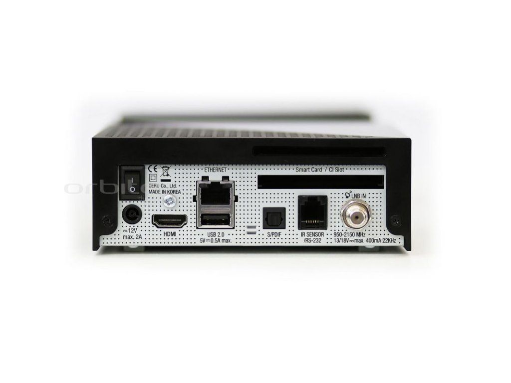 Pre dekódovanie má prijímač zabudovanú jednu UNI čítačku dekódovacích kariet a jeden CI slot pre vloženie CI/CI+ dekódovacieho modulu. Jeho rozmery sú 135 x 105 x 45 mm