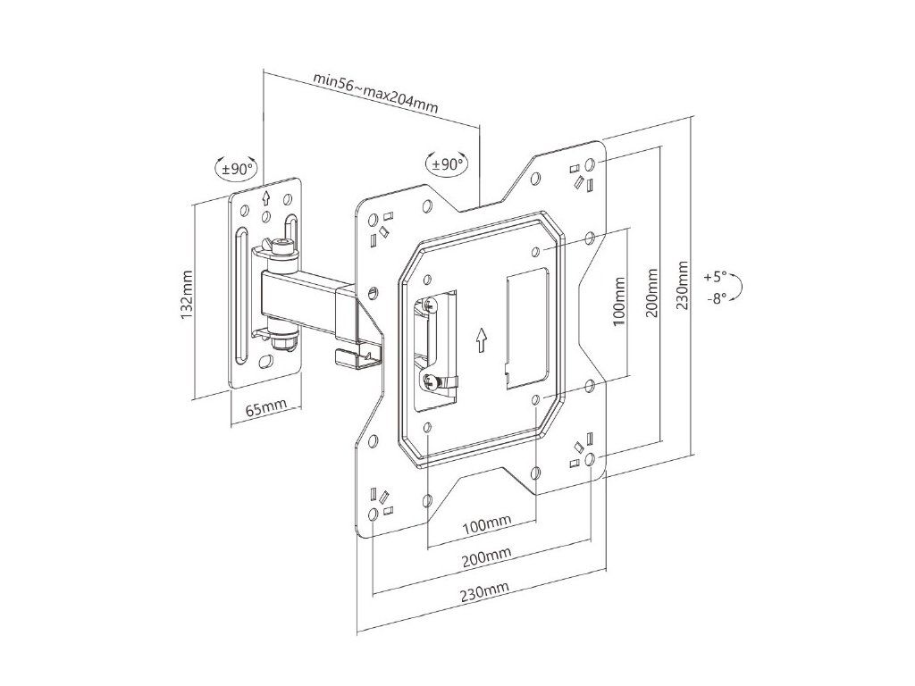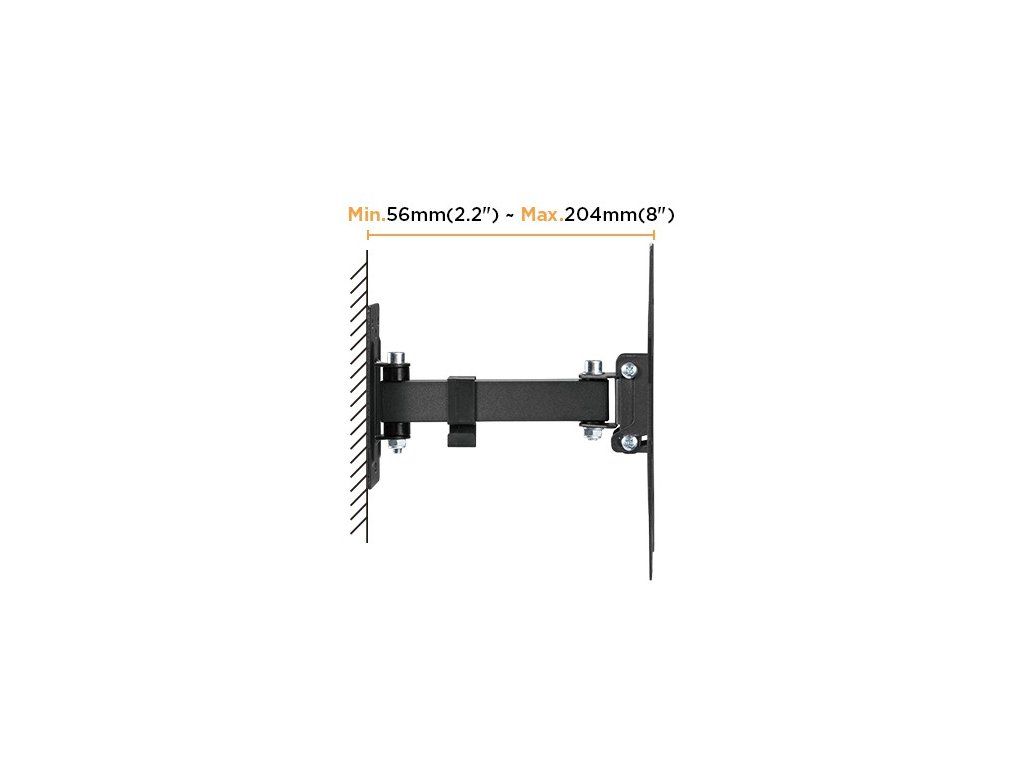 Výsuvný nástěnný držák LPA68-221 je určen pro instalaci TV s plochou obrazovkou s úhlopříčkami od 23“ do 43“. Má robustní výsuvnou konstrukci, díky níž unese TV o hmotnosti až 30 kg, zároveň je možné nastavit vzdálenost TV od stěny v rozsahu 56 mm až 204 mm. Samozřejmostí je pak také velký rozsah polohování. Držák umožňuje snadné naklápění TV v rozsahu +5°~-8° a natočení do stran v rozsahu +90°~-90°, což zaručuje pohodlné sledování z libovolného místa v místnosti. Integrovaná svorka na kabely udržuje kabely uspořádané a chráněné. HLAVNÍ VLASTNOSTI: • Robustní, výsuvná konstrukce • Nastavitelná vzdálenost od stěny v rozsahu min. 56 mm, max. 204 mm • Volně sklopitelná konstrukce pro jednoduchou změnu náklonu TV v úhlu +5°~-8° • Výsuvná konstrukce s možností stranového natočení v rozsahu +90°~-90° • Univerzální design kompatibilní s širokou řadů televizorů různých modelů a značek • Optimalizovaná velikosti balení pro nižší náklady na přepravu a skladování, tj. ideální produkt pro e-commerce prodejce • Jednoduchá a rychlá montáž • Součástí dodávky jsou plastové vázací pásky určené pro organizaci vedení kabelů • Součástí dodávky je kompletní montážní příslušenství • Podporované rozteče VESA: 100x100,100x200,200x100,200x200 Nástěnný držák pro TV Brateck LPA68-443 je nejen praktickým a funkčním doplňkem pro vaši televizi, ale také designovým prvkem do vaší domácnosti nebo kanceláře. S tímto držákem můžete svou televizi umístit do ideální polohy pro optimální sledovací zážitek a zároveň si užívat klidu a jistoty pevného a bezpečného uchycení. PARAMETRY: • Určení: pro TV • Způsob montáže: nástěnný • Počet TV: 1 • Maximální náklon (nahoru, dolů): +5°~-8° • Maximální vychýlení (vpravo, vlevo): +90°~-90° • Maximální otáčení TV: 0° • Nosnost držáku: 30 kg • Min. úhlopříčka obrazovky: 23'' • Max. úhlopříčka obrazovky: 43'' • Barva: černá mat • Hmotnost: 1.14 kgDodatočné parametre