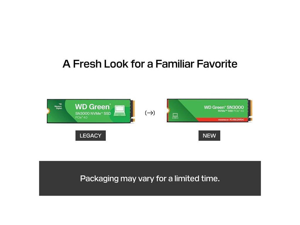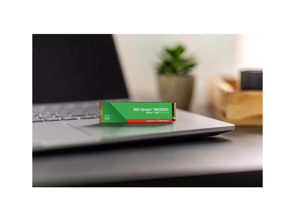 nergize your PC’s storage with WD Green SN3000 NVMe™ SSD Your PC can be faster than you imagine, and your important files can live right where you need them. Whether you’re upgrading your PC’s storage to launch applications, access files fast, or simply increasing capacity to save more files, the WD Green SN3000 NVMe™ SSD energizes your storage performance and provides much needed space. Experience PCIe® Gen4 read speeds up to 5,000MB/s2 in a slim M.2 SSD that allows you to use multiple apps with incredible responsiveness, so you can work without constraints. Exceptional storage performance with PCIe® Gen4 Maximize your PC’s performance with amazing speeds of PCIe® Gen4 NVMe™. Short boot times, quick application launches, and speedy web browsing with read speeds up to 5,000MB/s.2 High capacity SSD so you can keep saving your files Expand your PC with up to 2TB1 of solid-state storage and keep your photos, videos, and other important files immediately within reach. Slim M.2 SSD for PC compatibility The WD Green SN3000 SSD utilizes a single-sided M.2 2280 to be compatible with thin laptops and small PCs, while providing high capacity to expand your PC’s storage. Breathe new life into your current computer Multitask across applications with breathtaking responsiveness, transfer and save files faster, and improve your workflow with NVMe™ and Western Digital® nCache™ 4.0 Technologies. Reliable Storage, a brand you can trust Rely on the brand that professionals trust, with a 3-year limited warranty.3 Have peace of mind for all your data. Migrate your data with Acronis True Image for Western Digital software Move your data from your old NVMe™ drive to your new WD Green SN3000 NVMe™ SSD with our free downloadable Acronis® True Image™ for Western Digital® data migration software, so you can continue where you left off. Specifications Capacity 2TB Form Factor M.2 2280 Sequential Read Performance 5000MB/s Sequential Write Performance 4200MB/s Interface PCIe Gen4 x4, NVMe Dimensions (L x W x H) 3.15" x 0.87" x 0.09" Warranty 3-Year Limited Warranty Endurance (TBW) 250 Weight 5.4gms Model Number WDS200T4G0E-00CPS0 Operating Temperature 0°C to 80°C Non-Operating Temperature -40°C to 85°C Product Features Exceptional PCIe® Gen4 performance so you can demolish slow boot times and launch apps faster. High-capacity SSD with space to keep your photos, videos, and other important files within reach. Breathe new life into your computer, multitask across applications, transfer and save files faster, and improve your workflow. In The Box WD Green SN3000 NVMe SSD Left WD Green SN3000 NVMe™ SSD Compatibility M.2 NVMe PCs, laptops, and handhelds with PCIe Gen 4 x4, PCIe Gen4 x2, PCIe Gen3 x4, PCIe Gen3 x2 Model Numbers 500GB: WDS500G4G0E-00CPS0 1TB: WDS100T4G0E-00CPS0 2TB: WDS200T4G0E-00CPS0Dodatočné parametre
