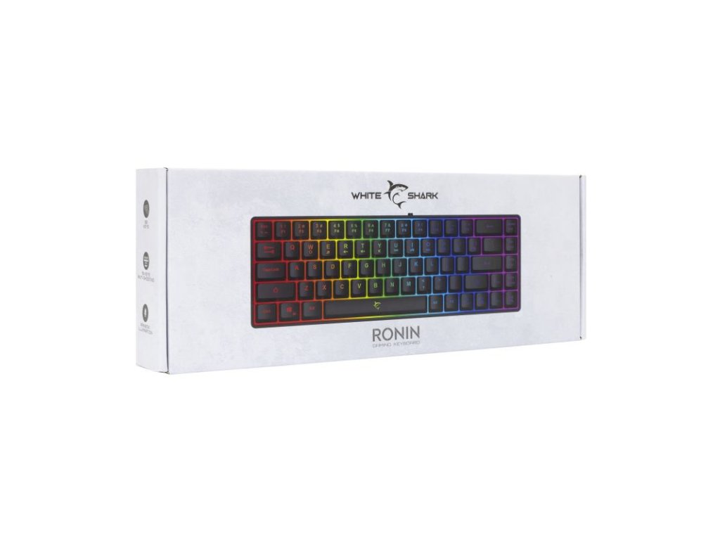 Hráčska klávesnica, 68 klávesov, membránová klávesnica os životnosťou stlačenia 10mil, US rozloženie kláves, Anti-Ghosting 19, LED RAINBOW, rozhranie USB 2.0, fixný kábel, dĺžka 1,5m, váha: 470g, rozmery: 311x102x38