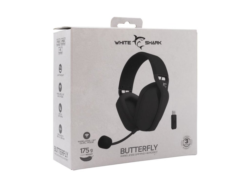 Herný headset, meniče 40mm, frekvenčný rozsah: 20Hz - 20kHz, impedancia 32Ohm, citlivosť 103dB +/-3dB. Rozmery mikrofónu 6mm x 5mm, impedancia mikrofónu 2200Ohm, citlivosť mikrofónu -32dB +/-3dB, rozhranie: bezdrôtové (bluetooth), Tlačidlo stlmenia zvuku: Áno, Materiál: plast, textil, Rozmery (mm): 190x73x193, Hmotnosť (g): 175, vypínač pre mikrofón, vypínač pre slúchadlá, ovládanie hlasitosti