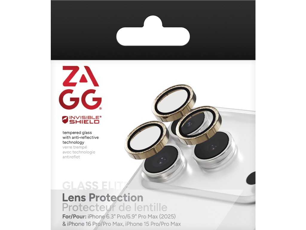 ZAGG Ochranná šošovka pre Apple iPhone 17 Pro/Pro Max/16 Pro/Pro Max/15 Pro/Pro Max - zlatá trblietka 200119623